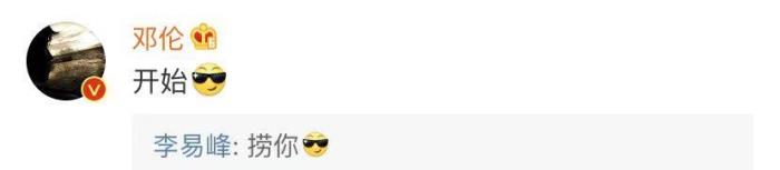 除了节目中搞笑互怼,两人在社交平台上也开始了互动,在李易峰为节目宣传的动态下,邓伦留言“开始”,李易峰随即回了一个“捞你”,并配上了和邓伦一样的“得意”表情。线上线下的频繁互动也向粉丝力证了两人之间的友谊。