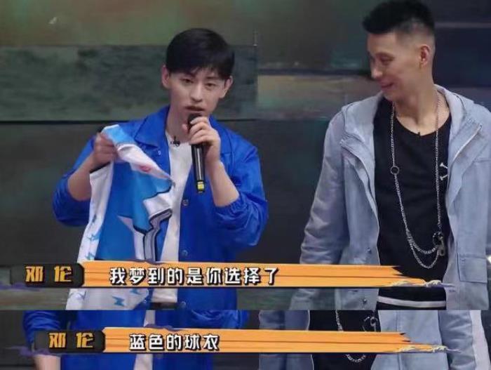 邓伦也不甘示弱,挥舞着自己的球衣对球员说,“我梦到你选择了蓝色的球衣”。没想到李易峰直接怼一句:“梦都是反的”。