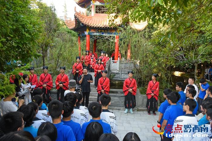 国学涵养心灵,学子砥砺自强!在孔子诞辰2572周年暨国庆佳节来临之际,9月28日下午,兴义八中隆重举行主题为“品味国学、诵读经典”的国学大讲堂系列活动,此次活动在科研处精心策划和校团委、惊琼诗社、民乐团、高一高二语文组、历史组、政治组紧密配合下隆重举行。