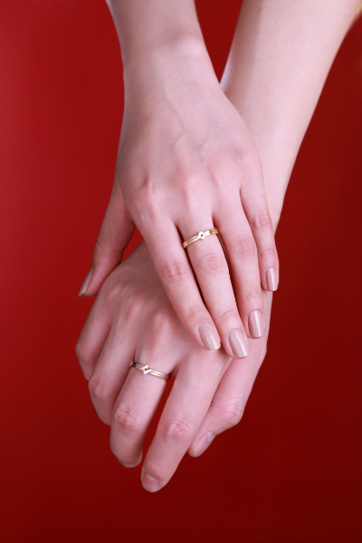 Past, Present, Future对戒,简单的单环戒指,最特别的是戒指组合了3种颜色,金、银和玫瑰金,非常新颖。