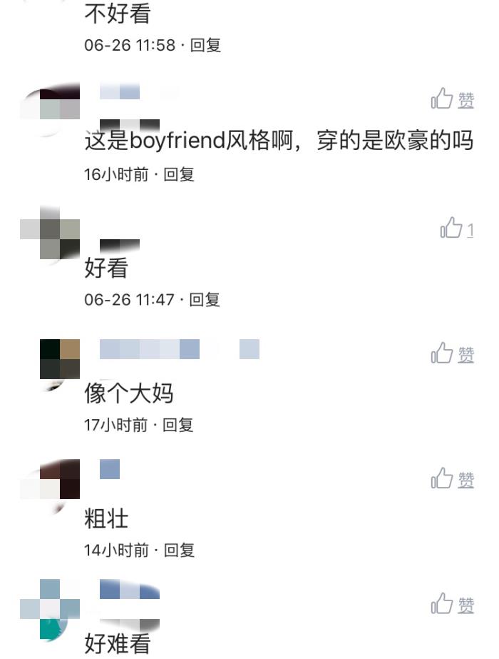 网友们的评论也毫不留情,基本上都在说马思纯穿的难看,显得粗壮,或者说她像个大妈。