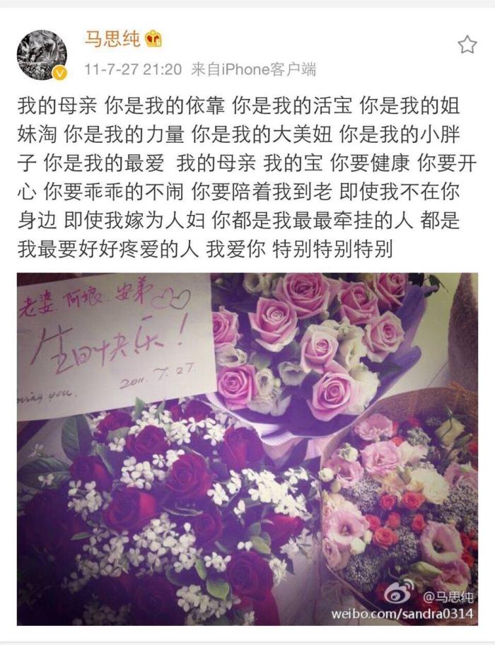 女网友发现,7月27日这一天是马思纯妈妈的生日,所以这次是要祝福妈妈生日快乐啦。