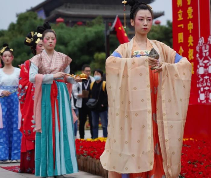 在这期间,游客可以欣赏到极具关中风情的华阴老腔表演,可以看到动感酷炫的秦俑机械舞,可以零距离地感受惟妙惟肖的木偶戏,也可以一睹古装小姐姐们带来的盛唐风华展,还有歌舞古乐、风情拉丁、乐队演奏等演艺。