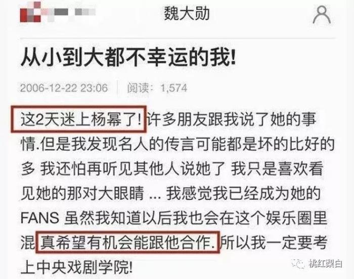 早在2006年,魏大勋就在博客上写下了迷弟心声。
