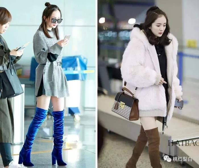幂姐以前的街拍以休闲装为主,会用过膝靴、腰带等小细节,来突出小女人妩媚的一面。
