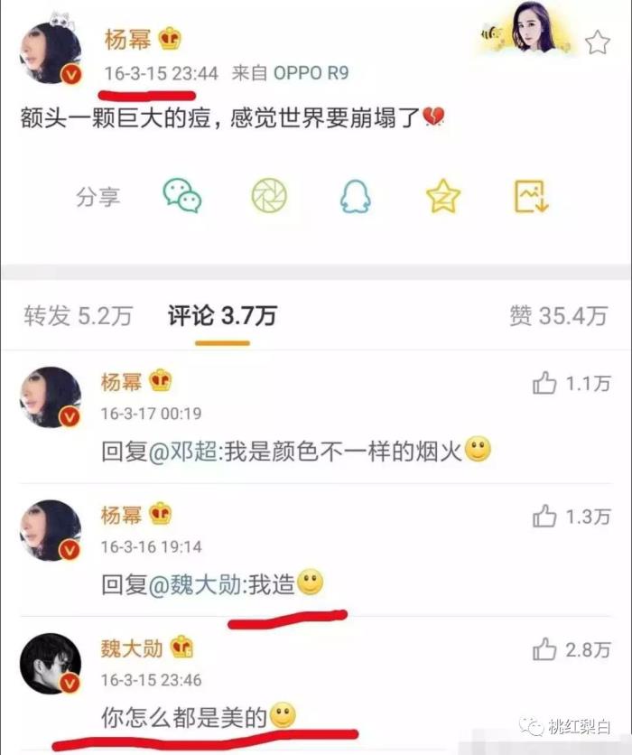 杨幂发博,魏大勋转赞评,这个套餐早就见怪不怪。