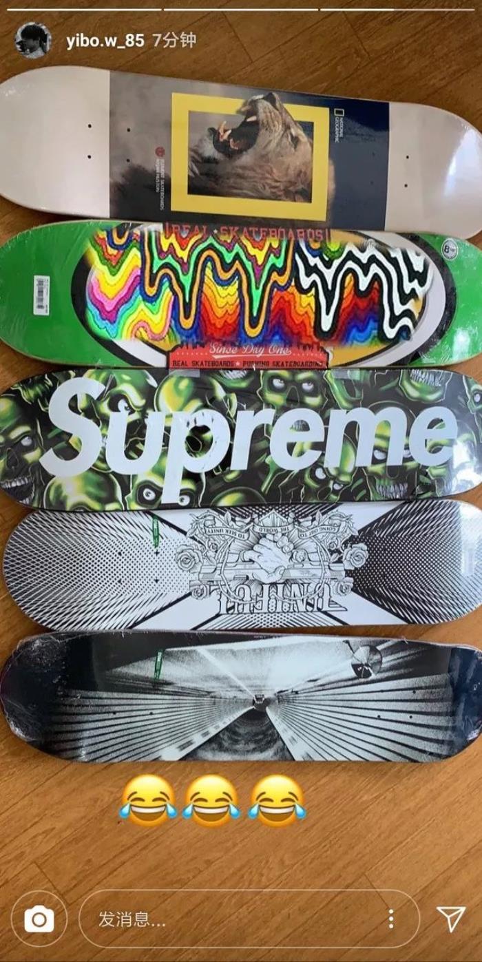 而且除了服饰以外,王一博也特别钟情于 Supreme 的配件,像充电宝、钥匙扣、小玩具一个都少不了。当然,王一博也买了不少 Supreme 的滑板,看来喜欢街头文化的人是无法抵挡 Supreme 魅力的。