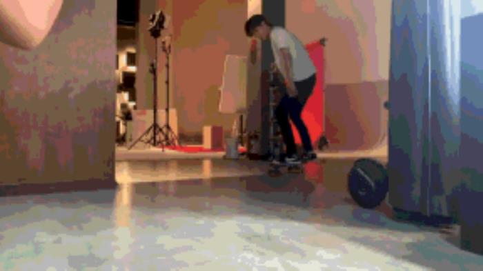 只要平时一闲下来,王一博就会抽空练习自己的滑板动作。(技术也在勤奋练习下,真的不断进步!)