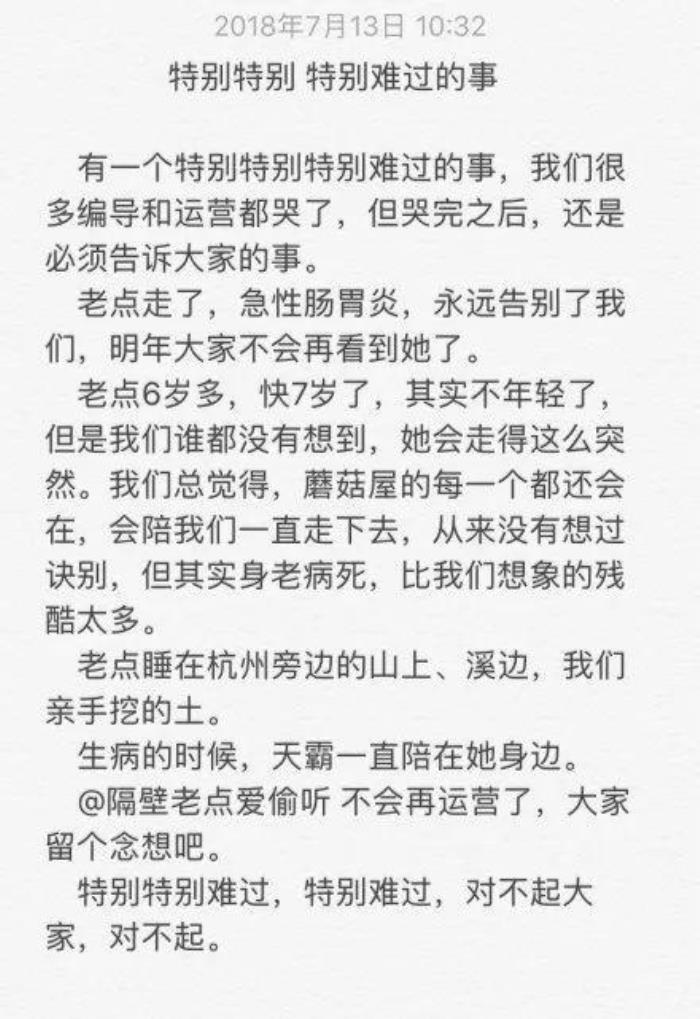 2018年7月13日,《向往的生活》的一头羊“老点”去世了(一开始叫“点点”),官微还特意发文悼念,包括何炅、黄磊在内的很多明星都转发了,网友也纷纷留言表示不舍。