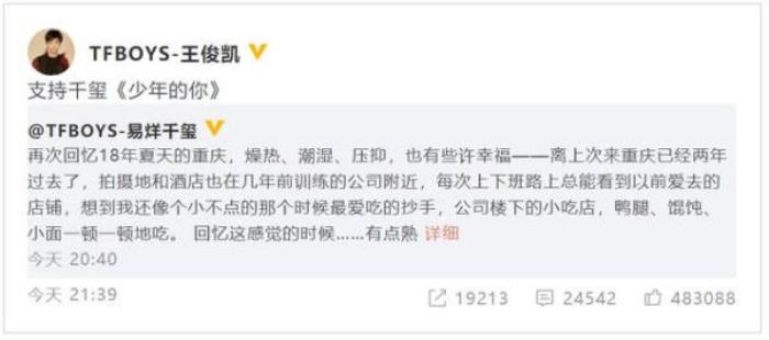 序言:2019年10月28日晚上8点多,易烊千玺发布长文,回忆拍摄电影《少年的你》的感受。正好,易烊千玺近日也回到了电影拍摄地——重庆“故地重游”,所以话匣子一下就打开了。