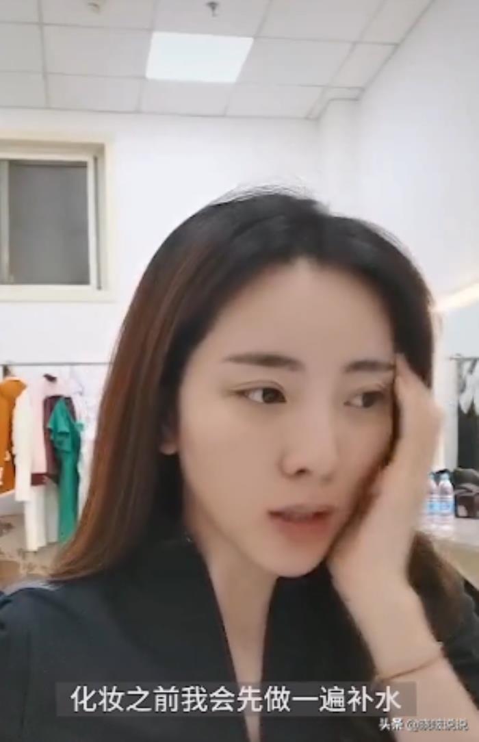 视频中的她,素颜状态下皮肤质量看上去非常不错,她先拿出来一瓶爽肤水来开始补水,并一直介绍。