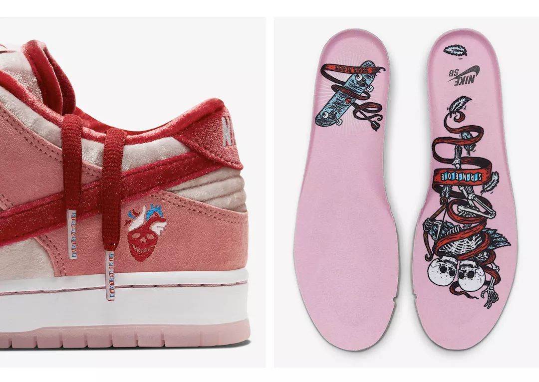 Nike今年的情人节款还挺多,不过看中的只有一款,就是STRANGELOVE X DUNK LOW SB联名情人节系列,配色真的太甜太少女啦,都想来一杯草莓奶昔啦!!看到鞋底的设计更是捂心口,天呐,这不就是高级撒狗粮的正确打开方式?暗戳戳发射满屏爱心!