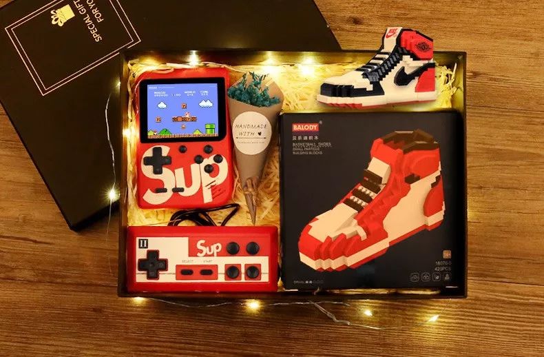 有些店铺还能提供礼盒,除了sup掌上游戏机,还可以搭配乐可定制、积木、手办等。