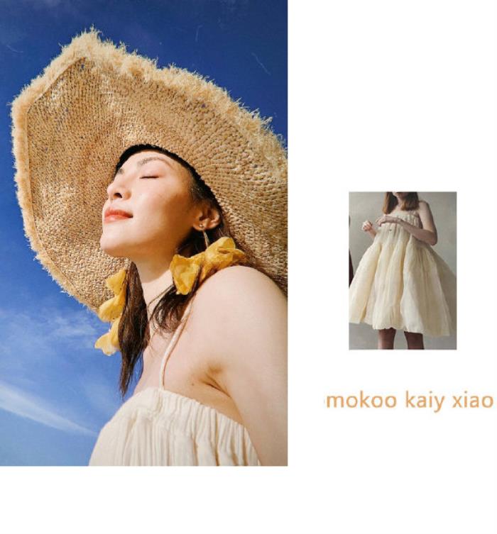 草帽作为一件防晒单品,同样也是一件时尚弄潮儿单品。夏天的时候搭配一件白色的方领连衣裙,两者叠加在身上就是强强联合啊~这一身的搭配,给人的感觉就像是柠檬汽水一样,沁人心脾,让人产生一种透心凉的感觉。配饰方面,钟楚曦选择了一个黄色的花型大耳环,不仅修饰了脸型,又丰富了身上的元素,整体上虽然看上去很慵懒,但是却十分精致可爱的。