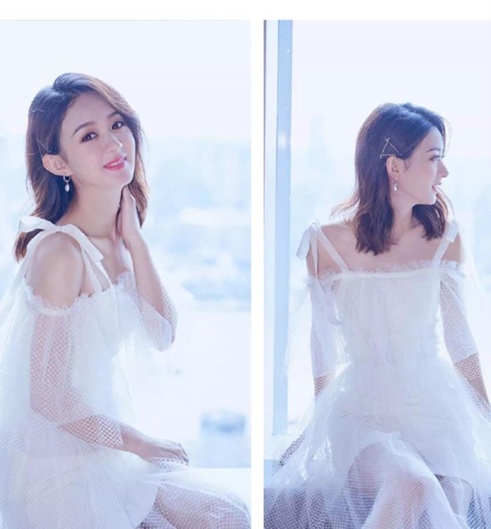 白色连衣裙搭配丸子头,整体上给人一种小清新的感觉,丸子头最大的优势在于有瘦脸的作用,而且可以很好地露出肩颈线,拉长颈部线条,完美地呈现锁骨线条,略V领的设计又参杂了一丝丝的小性感,钟楚曦用淡雅的妆容来搭配这样一条吊带连衣裙,妆容上不会显得很浮夸,整体上给人一种清冽甜美的感觉。