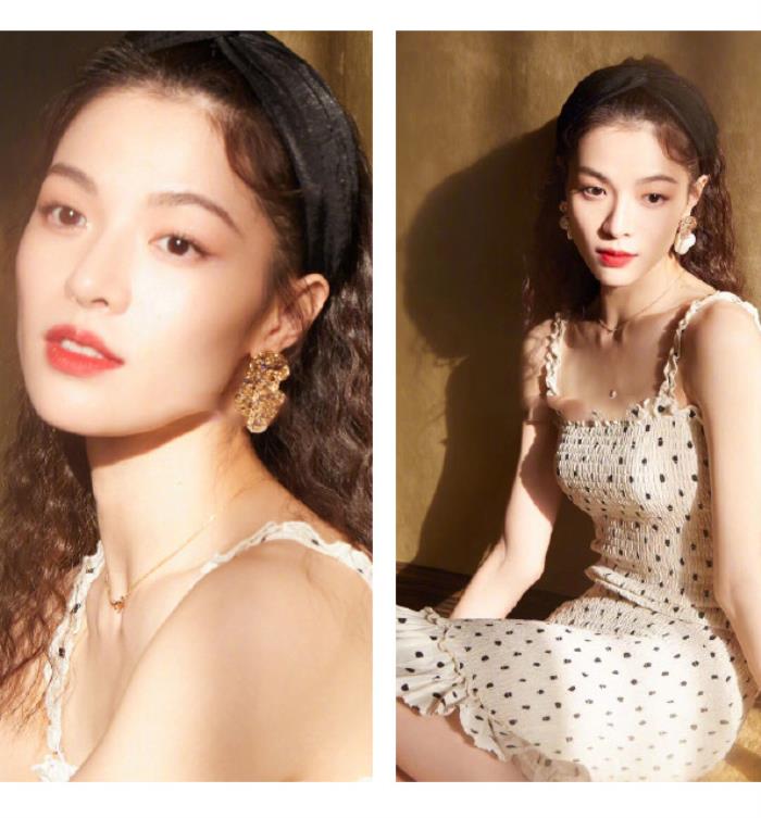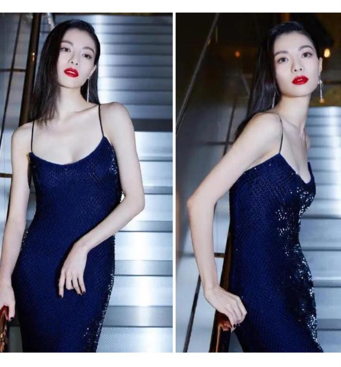 钟楚曦日常也是一位十分钟爱吊带的小姐姐呢~这一套深蓝色的吊带裙,属于非常修身的一款连衣裙,将钟楚曦优美的身材展露无遗,搭配上钟楚曦烈焰般的红唇和温柔的大地色妆容,尽显复古名媛气质。流苏的耳环不仅很好地修饰了脸型,更是将这种温柔的气质整体提高、升华。