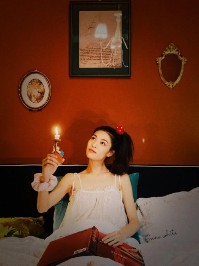 17岁生日这天,钟楚曦晒出一组十分具有小清新风格的生日照片,照片中的她身着白色吊带裙,头上束起了一个高高的单马尾,手中举着一个闪烁着微光的烛台,微黄的灯光洒下点点的光辉映射在脸上,让钟楚曦的精美的面孔显得更加的精致。
