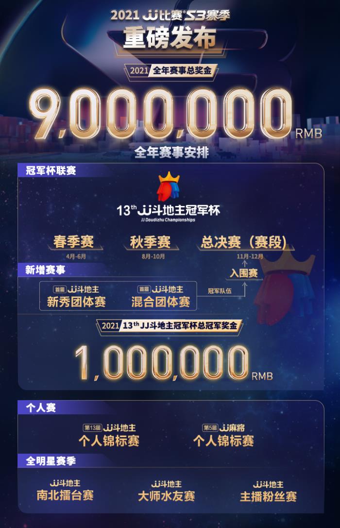 今天特意给大家带来2021年第13届JJ斗地主冠军杯赛事S3赛季详解!※其中包含大家都关心的奖金部分!