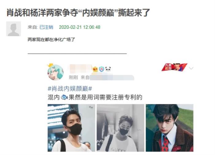 2月21日,有眼尖的网友发现肖战粉丝和杨洋粉丝在社交平台上开始了一场新的较量,而这场掐架的导火索,还是源于一个“内娱颜巅”的控评词。一个简单的词语引出了两家粉丝的骂战,看来粉丝们对“知识版权”的敏感度要比一般人高得多。而事件的起因则是部分杨洋粉丝带着“内娱颜巅”的话题安利杨洋,随后被肖战的粉丝发现开始狂狙,两家粉丝各不相让的举证说明这个词归自己所有。
