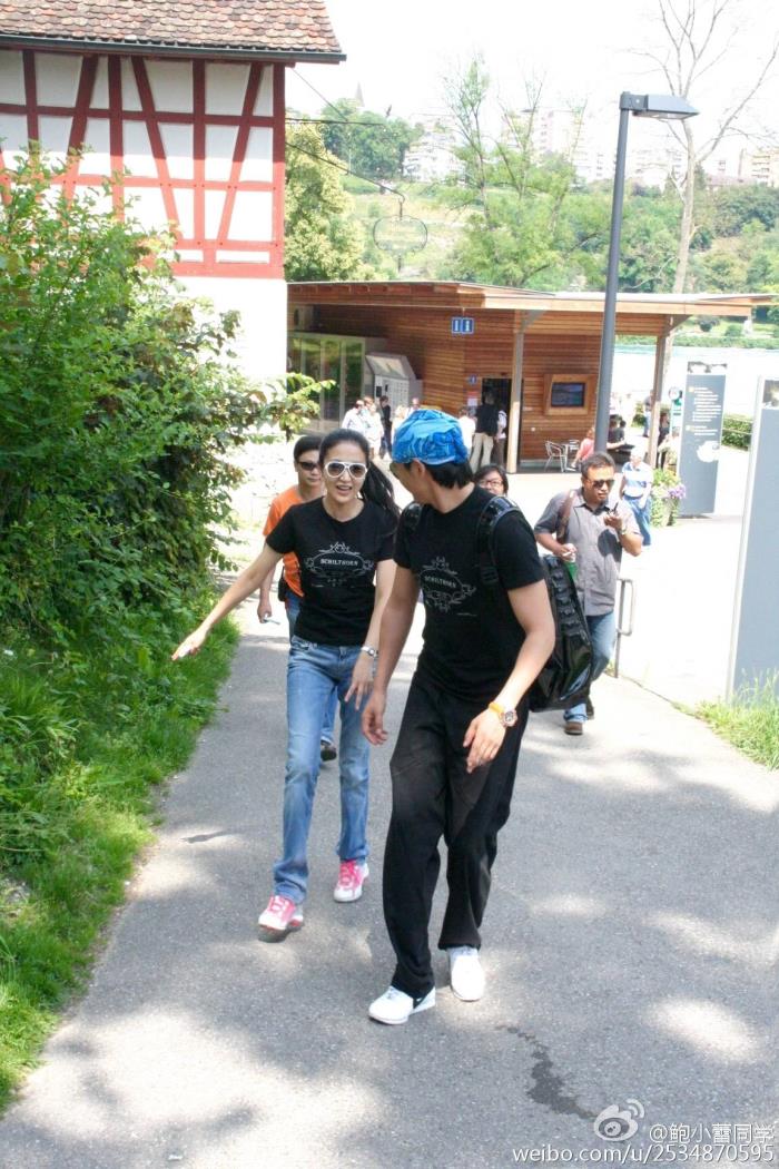 陆毅在前面笑的一脸爽朗,鲍蕾在旁边瞄向陆毅。眼神里藏不住的都是爱意!