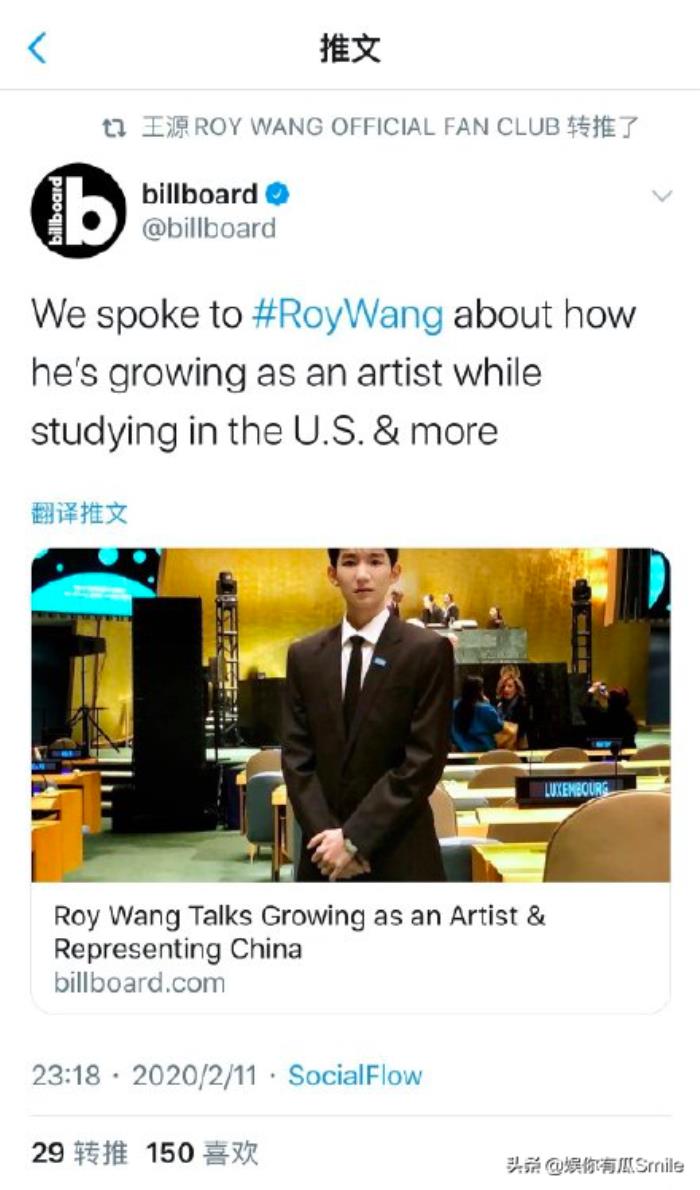 2月11日,一家外国刊物曝光了王源在联合国大会期间接受采访的内容。在采访中,王源的回应展现了超高情商,各种问题都回答的滴水不漏,宠辱不惊的态度深受网友认可。