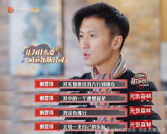对于谢霆锋而言是一种责任——希望中国的乐队能够输出自己的音乐产品;更是一种遗憾地补缺——出道以后没有缘分去组建自己的乐队。
