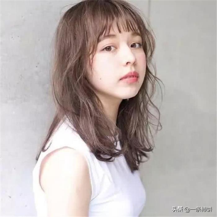 具有空气感纹理的日系刘海头,可以减少头部的重量感。少女纯欲感,清新又美好。头发下部不像通常的梨花头那么的卷,而且梨花头非常好打理发尾就随便乱卷即可。重点是发尾蓬松,视觉上缩小头部大小。