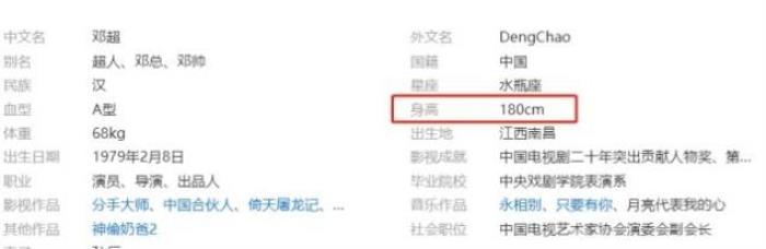 邓超相信大家也是很熟悉的,很多时候我们常常是注意到超哥搞笑的综艺感,这也让很多人不由自主的忽略了邓超年轻的时候也是个高颜值的小鲜肉呀,现在的老邓头也依旧很帅气,而他的身高,官方上也有给出180的数据,超哥也是颜值与身高并存啊。