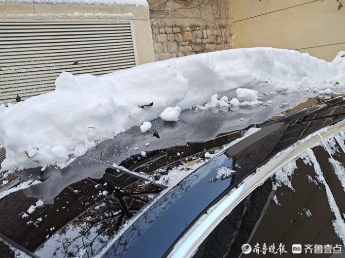 11月8日,济南雪过天晴后, 大批车主开车上路。有的车顶着一个雪盖头,还有的车主把周边清理了,只剩下中间一溜,很像莫西干人的头发造型。