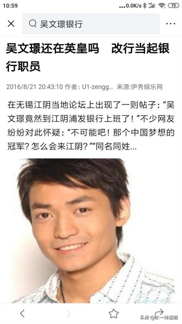 接下来再有消息就是在2016年,江阴的网友发现在江阴浦发银行看见吴文璟,经过证实,他确实是在银行上班,主要负责企业的宣传工作。
