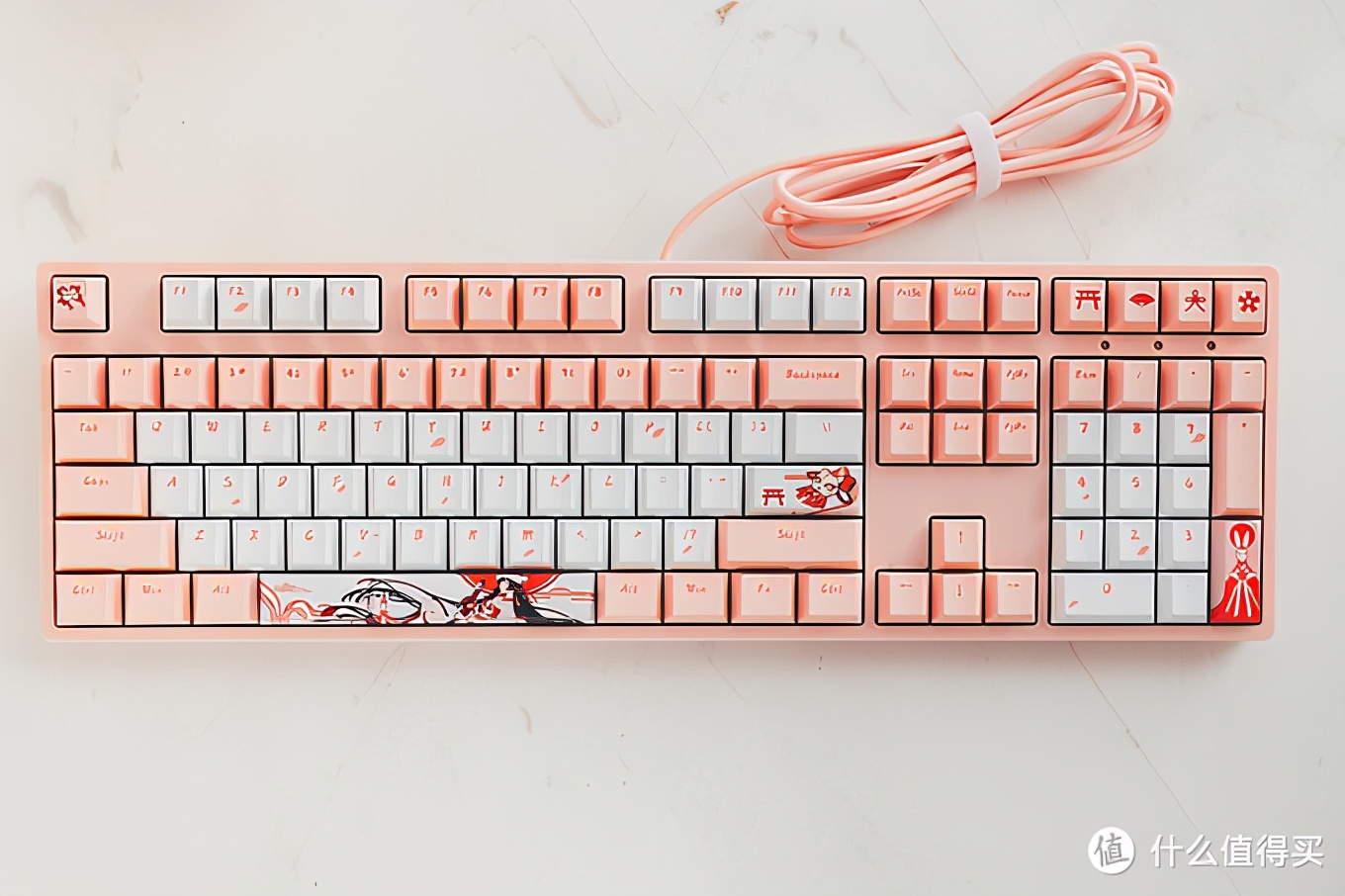 这是我最近为媳妇搭建一台办公主机配备的机械键盘,简单来说就是看上了这个配色和搭配。