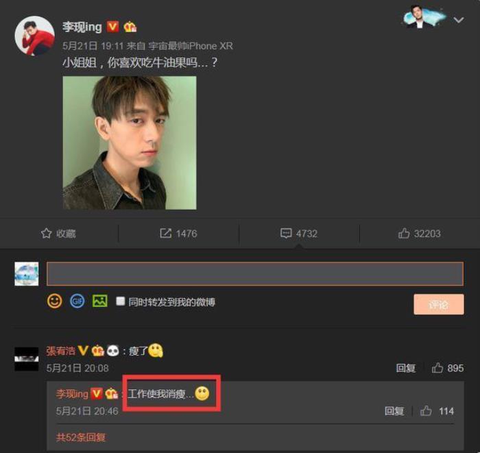 就在最近,李现还在微博上发表一张照片,并配文:小姐姐,喜欢吃牛油果吗?