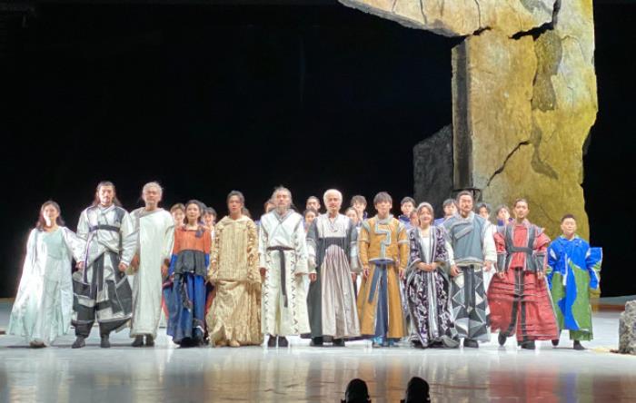 王冠还分享了音乐剧《赵氏孤儿》所有演员在台上的合影,右三的长袍美女就是薛佳凝,有闺蜜在台下助威,台上的她感觉到底如何?