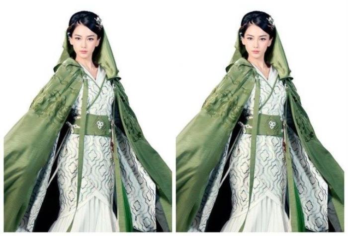 我们都知道,长得漂亮的人怎么穿都好看,杨颖五官精致在娱乐圈是数一数二的,360度完全无死角,同样一件青色古装,外面搭配同色系青色披风,气场十足。