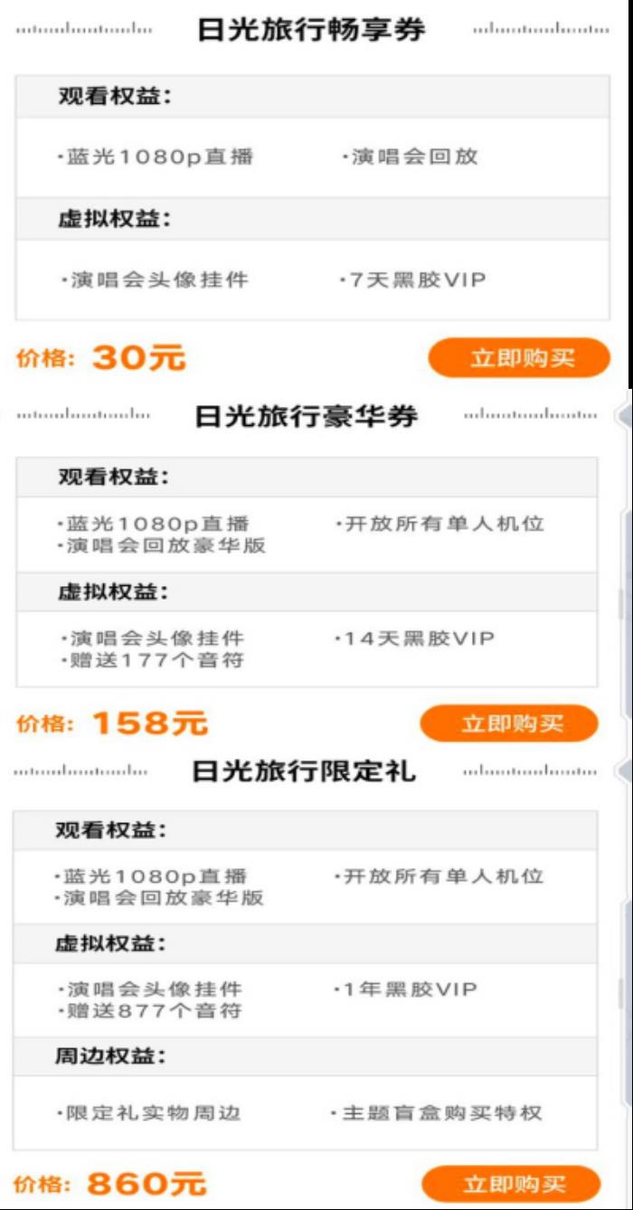 各票价观众权益对比