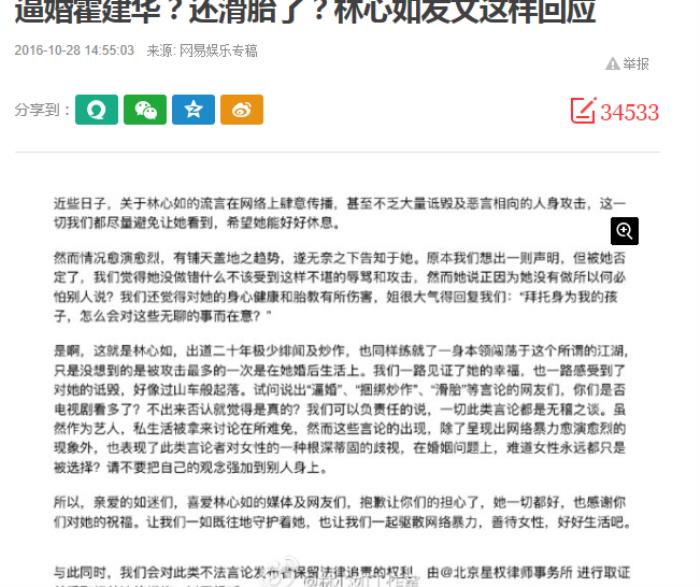 在林心如结婚好几个月后,坊间还流传不绝于耳的逼婚传闻,不知道是有人不满这对姐弟恋,还是其他目的,总之最后连淡定的林心如都被激怒了,发声明还击传闻捍卫尊严和声誉。