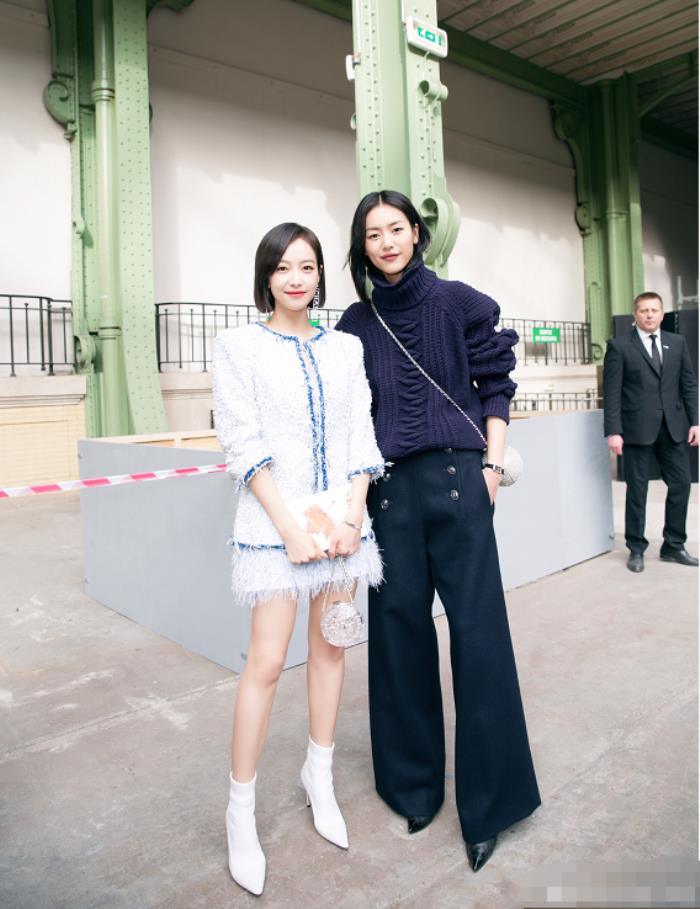 不知道刘雯鞋高多少,宋茜比例好,腿长出名的,果然,跟表姐站在一起,也没输。