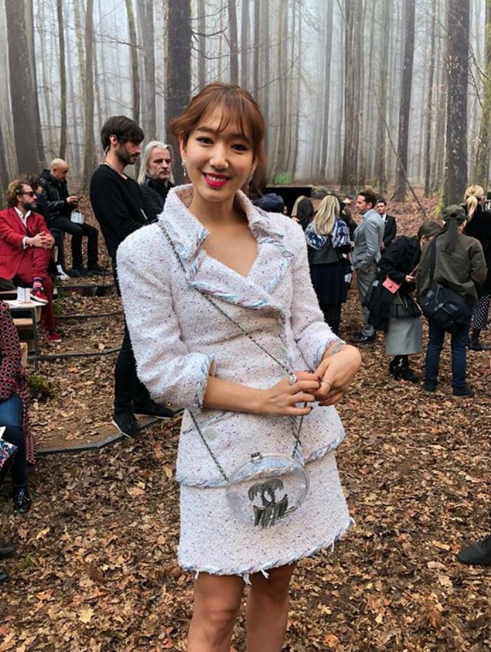 再看看朴信惠的看秀造型,感觉她又胖回来了!上身格外壮硕。