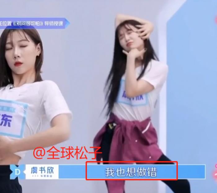 就在这个时候,站在后面的虞书欣吃醋了,非常羡慕别人能够被偶像手亲自指导,说道“我也想做错”,同时变换动作,故意做出了一个形似“抽筋”的变扭姿势,果然是个名副其实的“小作精”。