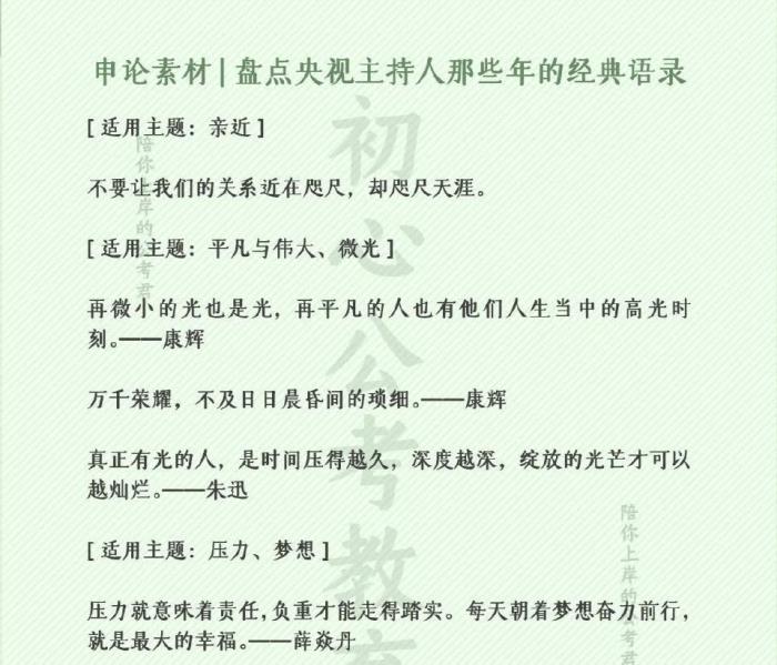 央视主持人的经典语录这不就整理好啦[偷笑]现成的#申论# 素材还不转发拿去用[给力][给力][给力] [