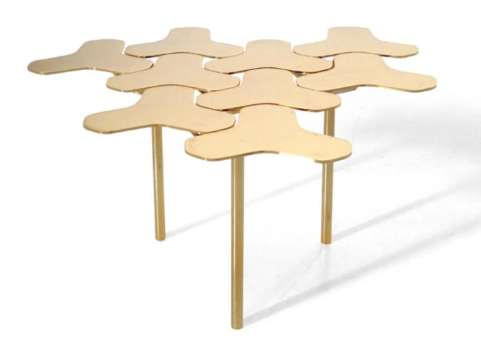 沙发前摆放的是Moroso的Nanook金色茶几,顶部为钢板材质,底部为粉刷管或金铬合金,利用数码印刷技术为涂层,合成模具为结构,是一件兼具设计感和技术性的家具。