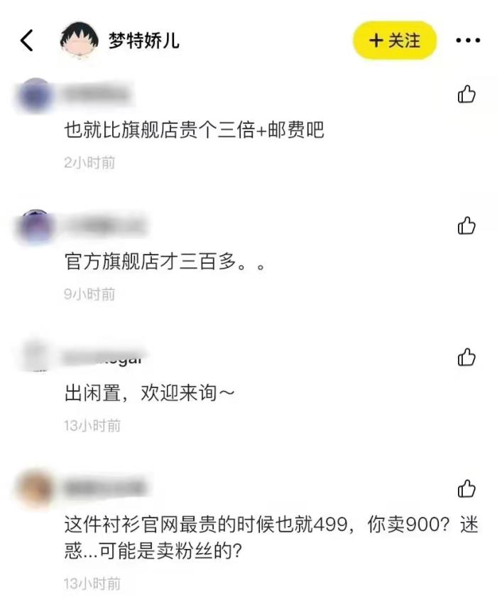 对此,有网友在沈梦辰个人微博下留言:二手衣服卖的比专柜还贵三倍,你这么缺钱么?