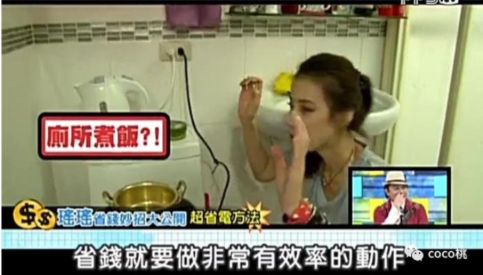 后来在12年的时候,她就在节目中给大家演示了如何在马桶上煮饭这一“绝招”。并且还在煮面的过程中,特地给大家分享了她的独家省钱法。