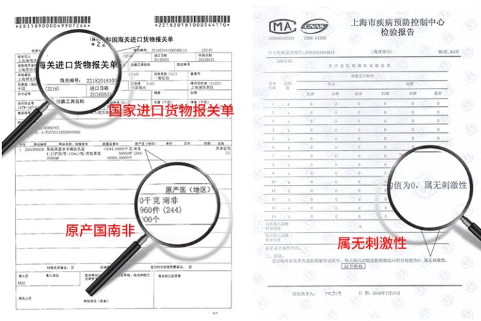 原产国一直都是在南非,所以进口货物报关单和检测的单据也是齐全的,因为也是可以完全的放心用在肌肤上的。
