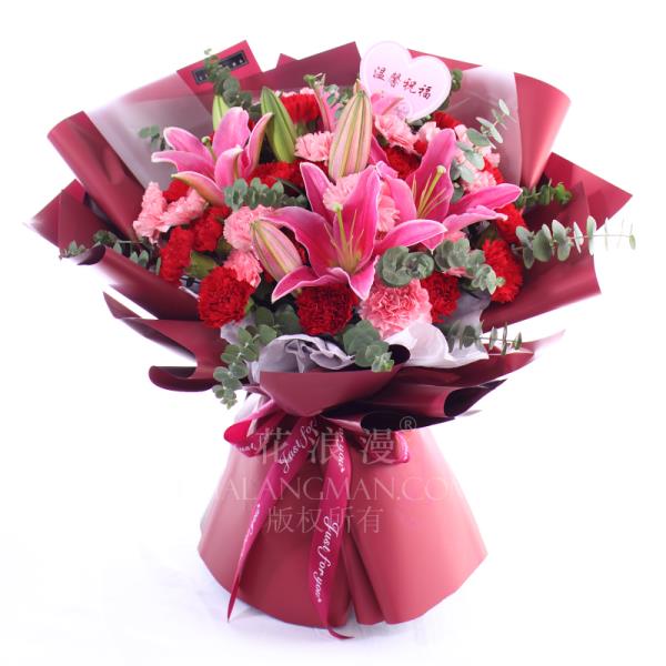 如果你想祝妈妈好运,可以考虑在母亲节送一束百合,百合花将会是生日和母亲节的一大惊喜。有各种颜色的百合花,通常可以送妈妈粉色的百合,你可以选择粉色和红色混搭的百合花束。