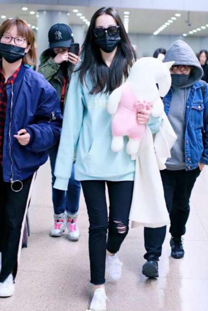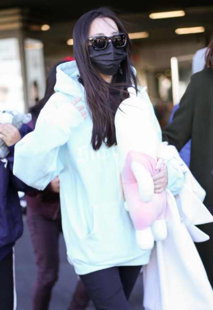 29号上午,迪丽热巴匆匆忙忙现身北京机场,