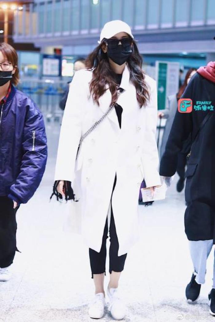 白色挺括风衣搭配修身九分牛仔裤,脚踏小白鞋,这样的热巴休闲又时髦。虽然迪丽热巴口罩帽子遮面全副武装,还是获众多粉丝簇拥围堵人气旺,见镜头挥手致意。