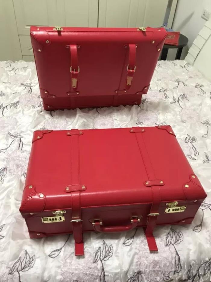 行李箱,以前老人结婚都是用陪嫁红皮箱,现在大多数年轻人都觉得过时了,现在一个红色的和一个银色,刚好一对,度蜜月的的时候,肯定用得上