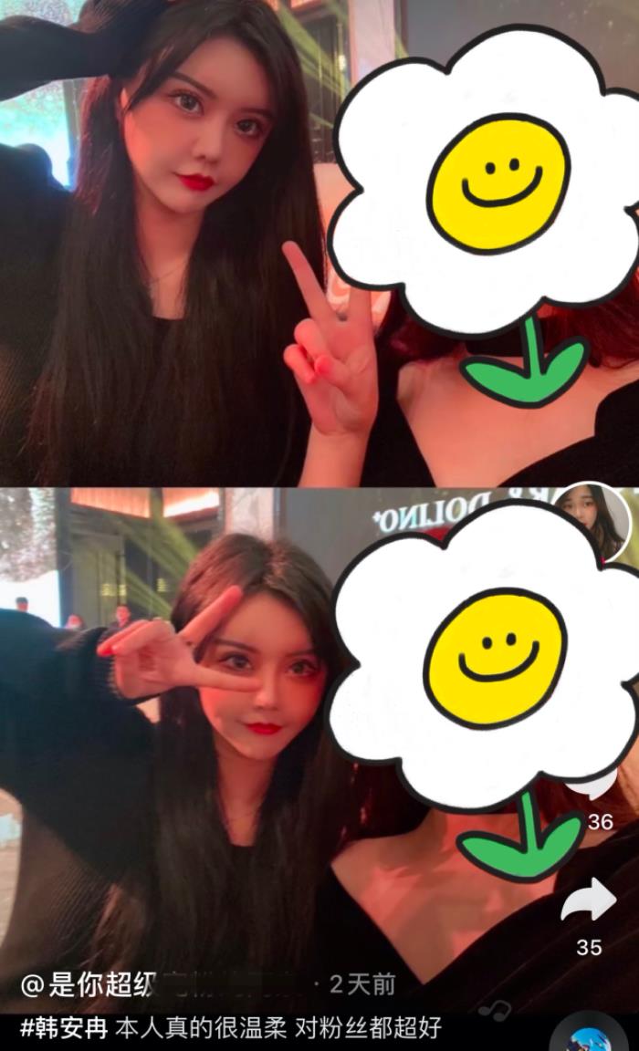 虽然在直播中展现出“尖酸刻薄”的嘴脸,但私下的韩安冉对粉丝还是相当热情的。3月15日,有网友晒出偶遇参加活动的韩安冉的视频,她还亲自颁给了韩安冉“好人卡”:“本人真的很温柔,对粉丝都超好。”