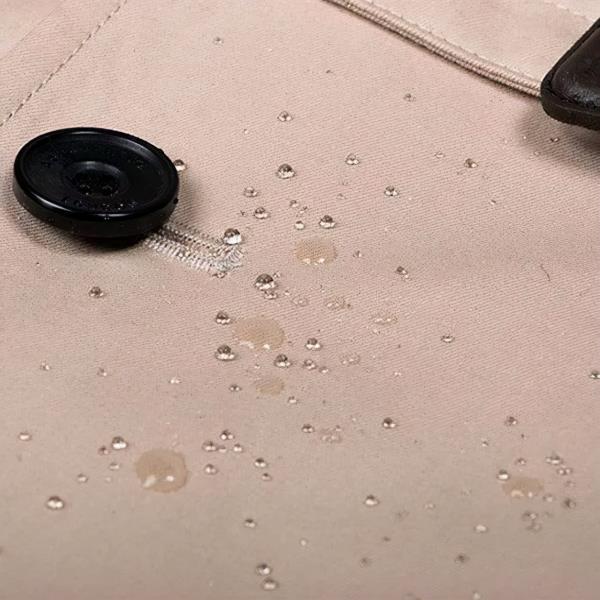 雨罩经典款风衣的背面肩部都有一片防水罩,用来在大雨中阻隔雨水,保护身体。